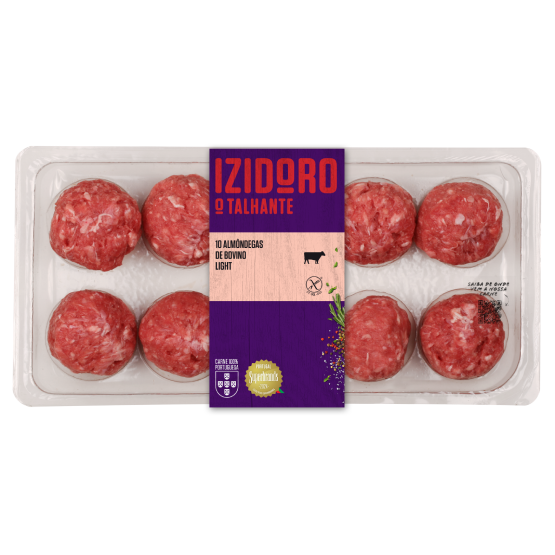 Ingredientes: Carne de bovino (81%), água, farinha de milho, sal, antioxidantes(citratos de sódio e ascorbato de sódio), conservantes (metabissulfito de sódio) e corante (ácido carmínico) Percentagem de matérias gordas inferior a 11%; relação colagénio/proteína de carne a 15%
