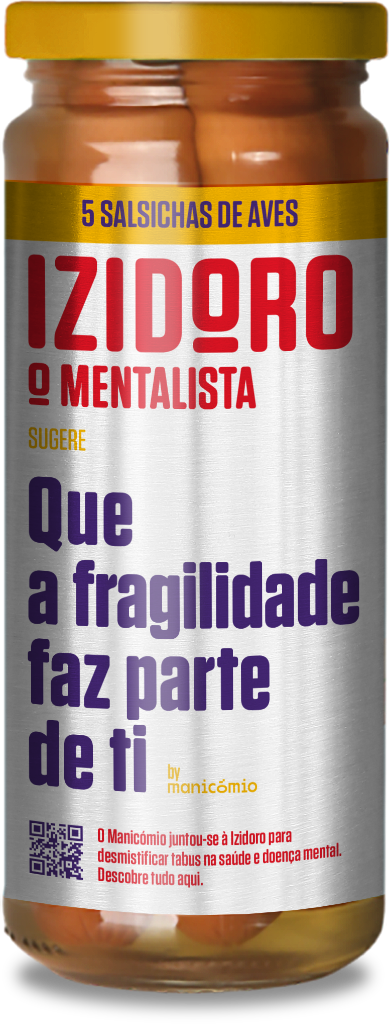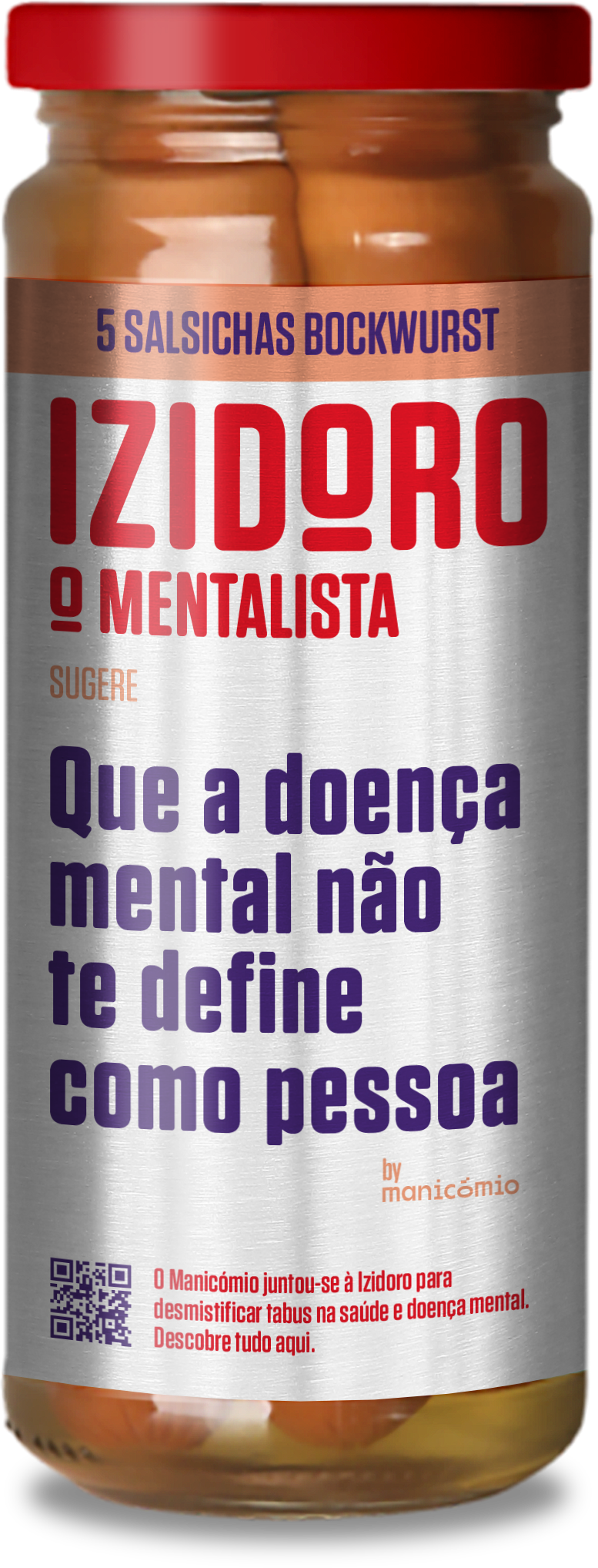 Enquadrada na campanha, criámos a coleção “Izidoro O Mentalista” para desmistificar tabus na saúde e doença mental. Esta coleção especial é composta por 8 frases colecionáveis, que podem ser encontradas nos rótulos dos nossos frascos de salsichas bockwurst e de aves, em qualquer ponto de venda. Os rótulos com design espelhado, funcionam como uma alegoria ao ato de ser ver a si mesmo, incentivando cada pessoa a reconhecer